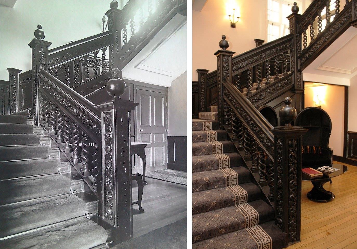 Staircase area before the redevelopment and after in 2016