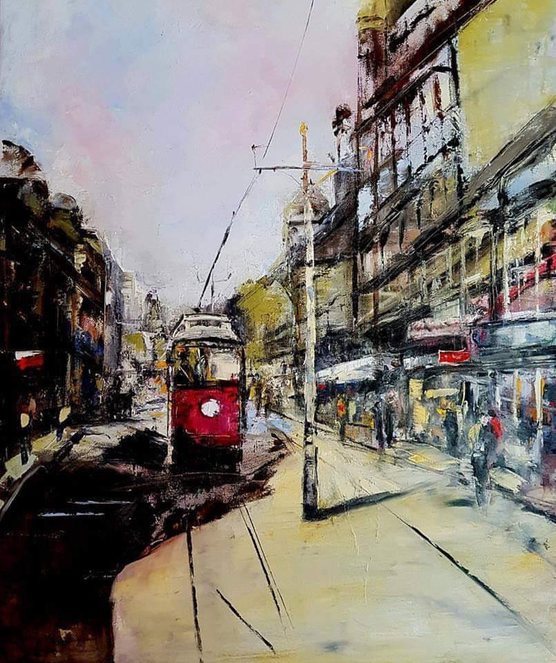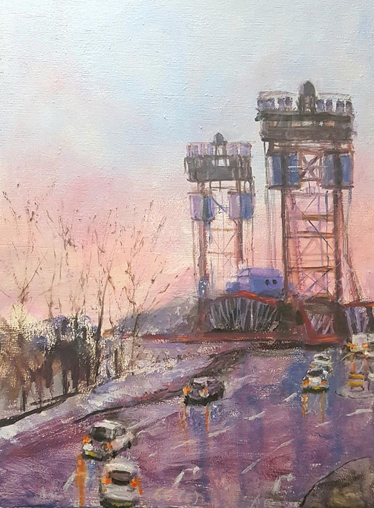 I’ve always enjoyed art and music and although we didn’t have a lot of money when we were growing up, we always had an old piano in the house which I loved. As an adult I dabbled a bit with drawing at home and when my children were older and I had more free time, I went along to a local art group. My first painting was of boats at Paddy’s Hole, Redcar painted in oils with a palette knife and this has continued to be the main medium for my painting. I received positive comments from other artists and encouraged to enter exhibitions winning awards, and selling my work. What made you paint Middlesbrough?
