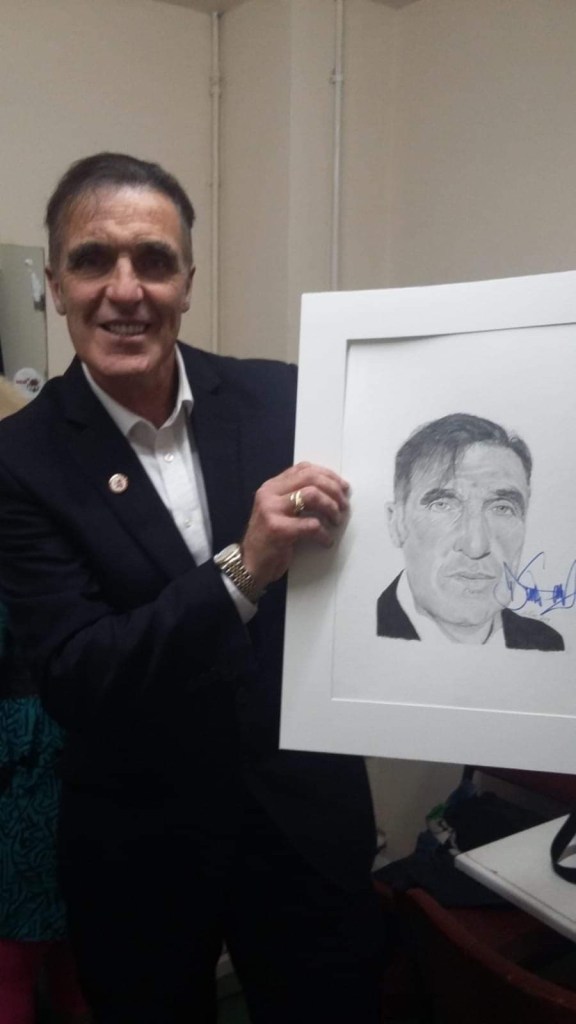 I’ve had such a positive reaction from people in Middlesbrough. It makes me do proud to be from Teesside. It’s not just about being an artist for me, it’s about bring a teeside artist. In my heart that makes all the difference, being able to represent Teeside through my art means everything. I’ve drawn a portrait of Roy Chubby Brown he kindly signed it for me.i then raffled it raising over £500 for the neonatal unit in Jamescook, a cause very close to my heart. My daughter Rosie spent her first few months fighting for her life in the neonatal unit and I cannot thank them enough for what they did for her, she is now 11 she has autism and hydrocephalus and is visually impaired although some things can be a struggle for her she never lets her disabilities get her down. I’ve also drawn a portrait of McKenzie Thorpe I gifted it to him, he was over the moon with the drawing and said it looks just like him. That meant so much to me, he is a role model of mine, I’m a huge fan of his work to be able to gift him a piece of my work meant a lot. I’ve drawn a pencil portrait of Bernie Slaven too, he signed it and raffled it at the beechwood and easterside social club. I decided to do a pencil portrait of Alistair Brownlee too. He was such a well loved man in Middlesbrough and I wanted to give something back. I gifted the original drawing to his lovely wife Wendy it really meant a lot to Wendy and her family to have the portrait. I then used some of the prints with Wendy’s blessing to raise some money for Zoe’s Place. I also used my art to raise money for the homeless cafe. For me I would like my art to make a positive difference in the world, it means so much to me that other people get to see and appreciate my art. I think if you have the capability of making a difference you should. That’s what I’ve always hoped my art could do.